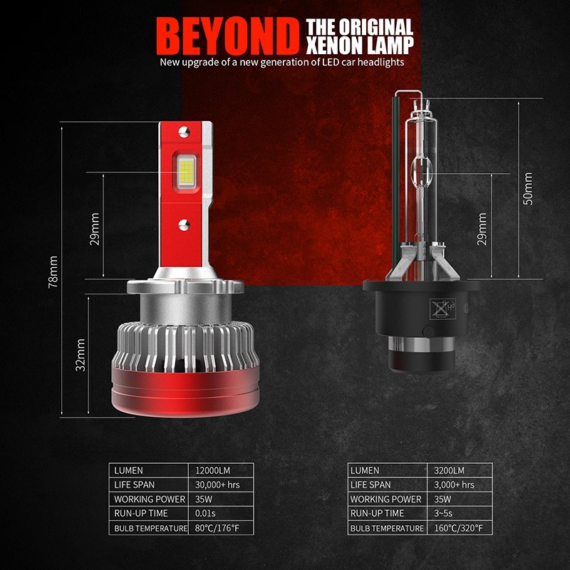 Einteilige Birnen des Vertrags-D3S LED: Eingebauter Fahrer und bereiter Entwurf CANBUS. Eingebauter Fahrer, so nur ein kleiner Raum ist für Installation erforderlich. Und kein Bedarf, sich um den Extrafahrer zu sorgen, der den Winkel der Bewegung in Richtung von der Projektorlinse, einen AFL-Fehler auf dem Armaturenbrett verursachend blockiert.